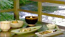 「指月亭」 西明寺へと向う赤い橋、槇尾橋。その橋のたもとにある指月亭は、清滝川と緑の木々を借景とした食事処。川のせせらぎを聞き、緑の木々を眺めながらいただく川魚のお料理。自然の恵みを目と舌で味わいます。 【営業時間】 9:00〜17:00 不定休
