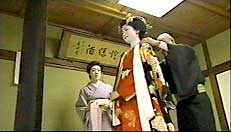 初々しい舞妓さんの誕生の日、「店だし」です。男衆が黒紋を着付け、髪にかんざしを付けて舞妓さんの出来上り。そして、男衆に連れられて祇園界隈のお茶屋に「店出し」の挨拶めぐりです。祇園にまた風雅な舞妓さんが一人誕生しました。