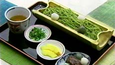 夏のお勧めは抹茶を練り込んだ素麺