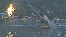 涼を求めて嵐山に遊ぶ。夜の帳が降りると松明が灯り、鵜飼が始ります。水面を照らす篝火。幻想的な風景が闇の中に照し出されます。王朝貴族達も心ときめかせた鵜飼。京都の夏の風物詩です。