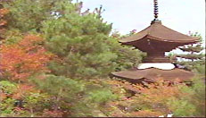 洛西、小倉山の麓にたつ常寂光寺。日蓮宗本圀寺の日禎上人は、豊臣秀吉の方広寺大仏開眼供養に出仕を拒否し、この寺に隠棲しました。茅葺きの仁王門をくぐると、紅葉が古い石段を包み込むよう。常寂光寺は、洛西の紅葉の名所の一つです。その昔、百人一首の選者、藤原定家が時雨亭を構えた所とも伝わります。