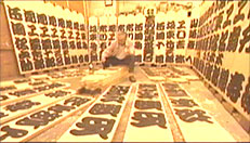 「川勝清歩さん」 年末恒例の南座・顔見世興行。正面にずらりと並んだ歌舞伎役者の看板「まねき」は、師走を華やかに彩る風物詩。「まねき」独特の勘亭流文字を、力強い筆致で書くのは、書家・川勝清歩さん。長さ1.8m幅32cmの檜板、47枚に次々と役者の名前を書いていきます。