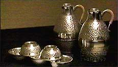 寺町通の清課堂、茶器や酒器をはじめとした錫の器のお店です。創業以来165年、変わらぬ手仕事、鋳型に流し込んだ錫を削りあげる。七代目、山中源兵衛さんはその伝統を受け継ぎ、錫に命を吹き込んでいます。独特の輝きを放つ京錫。長く使いたい逸品です。伝統の技術は新しいデザインにも生かされています。