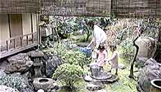 「秦邸」 百年前の町家を今に残す秦邸。今日はお客様をお迎えする日。おもてなしの準備に心を配ります。打ち水やお花、座布団など念には念を入れて約束の時間のギリギリまで、おもてなしの準備で大忙し。全ての準備が終えてほんの一息ついた頃、約束の時間より少し遅れてお客様が訪ねてきました。これを京都では「髪の毛一本遅れて行く」と言います。髪の毛一本とは2〜3分。相手の心を思いやる京都のお作法です。