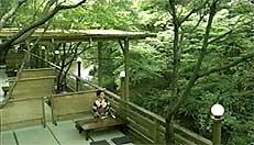 緑の風が心地よい、鷹ヶ峯「しょうざん」。3万5千坪の中に料理屋や、染め工房、プール、庭園などが点在します。この時期は渓涼床で涼がお勧め。川のせせらぎを聞きながらいただく、旬の幸、清流の恵みを盛り込んだお料理。涼風と自然の香りを味わう川床です。