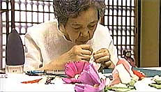 「香袋作家 中野ゆきさん」 優雅な香りを放つ香袋。ゆかしい京都の香りです。香袋作家・中野ゆきさん。一針一針丹念に縫っていきます。ちりめんで作られた芙蓉の花の香袋。目では見ることの出来ない香りの形です。愛らしいコスモスとトンボ。中野ゆきさんの作る香袋には、自然を慈しむ心がこめられています。 ※中野さんの作品は購入できません。
