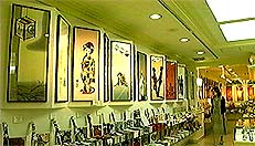 祇園の永楽屋細辻伊兵衛は、江戸時代から続く老舗の布問屋。ギャラリーには、明治、大正、昭和にかけて作られた手拭いが展示され、若い女性の人気を集めています。斬新な柄と、大胆な構図で描かれたロマン溢れる町家手拭い。店内に、評判を呼んだ町家手拭いの復刻版が並び、当時の面影を伝えています。秋を感じる絵柄を選んでお土産にしました。