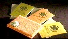 三条大橋を渡って、夕暮れの河原町へ。あぶらとり紙専門の店、「象」。象のマークが入った大きい看板が目印です。かわいい色の包装紙に包まれたあぶらとり紙。肌質に合わせて五種類の紙から選べます。オリジナルのケースにも象さん。あぶらとり紙は京都のお土産の定番です。
