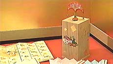 「投扇興」 扇を投げて的を落とす、雅な遊び投扇興(とうせんきょう)。扇と的の落ちた形を、源氏物語五十四帖になぞらえたた図式に照らし、優劣を競います。江戸時代に隆盛を極めました。京都ではその道具が職人さんの手によって一つ一つ丁寧に作られています。道具をみているだけでも優雅な気持ちになってくる投扇興です。