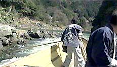 「保津川下り」 保津川下りは、丹波亀岡から嵐山まで16キロの渓谷を2時間で下る船下り。曲がりくねった狭い川筋を船はしぶきをあげ、勢いよく下っていきます。江戸時代、慶長年間に角倉了以が丹波から京都への物資の運搬用に開いた産業水路。自然に包まれた美しい景観の中、船頭が竹竿一本で操る保津川下りを楽しみます。