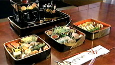 安政三年に創業した下鴨茶寮は平安期より下鴨神社の庖丁人を勤めてきました。歴史あるお座敷と3つあるお茶室。お正月の室礼の中で、色とりどりのおせち料理をいただきます。一の重は山海の珍味が並び、二の重は魚介類と酢の物。新春を愛でる喜びに溢れた京都のおせち料理です。
