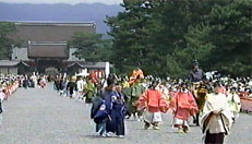 「賀茂御祖神社」 賀茂御祖神社(かもみおやじんじゃ)通称、下鴨神社で行われる、葵祭は日本最古の祭り。「賀茂祭」の名前で6世紀に五穀豊穣を願って始められました。江戸時代に入って、祭りに使用する牛車、勅使、内裏神殿などを葵の葉で飾るようになってから、「賀茂祭」は現在の「葵祭」と呼ばれるようになりました。華やかな衣装はまるで王朝絵巻を見るようです。 下鴨神社ホームページ