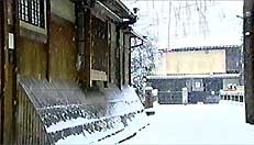 「祇園切り通し」 祇園切り通しは、白川南通りから四条通りまでの、わずか150m程度の小道です。寛文年間(1661?73)公許の郭として正式に開かれた祇園町の内外六町である「富永町」と「末吉町」「本吉町」を横断する為、花街としてもっとも栄えた通りの一つでした。白川にかかる巽橋、祗園の人々の信仰を集める辰巳稲荷も、一面雪に覆われています。