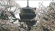 「仁和寺」 888年宇多天皇によって開かれた仁和寺。境内を淡い桜色の御室桜が彩っています。樹高3メートルにも満たない低木であることから、花(鼻)が低い「お多福桜」とも呼ばれています。例年4月中旬には十数種類の桜が咲き誇り、京都でも遅咲きの桜として知られています。 仁和寺ホームページ