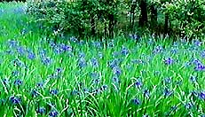 「大田神社」 上賀茂神社の境外摂社「大田神社」。この季節、一面のカキツバタが咲き誇る大田ノ沢(おおたのさわ)。平安の頃より名高い、カキツバタの名所です。鮮やかな紫色に染まる様を平安歌人たちは恋の一途さに例え数多くの歌に詠みました。緑に栄える高貴な紫の花は5月中旬頃が見頃です。