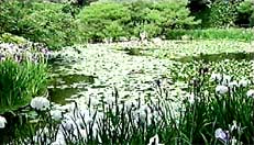 「平安神宮」 明治時代の代表的な日本庭園として広く内外に知られている、七代目小川治兵衛の手による平安神宮神苑。社殿を取り囲むように東・中・西・南の四つの庭からなっています。西神苑の池はいま、初夏の花で彩られています。池の水面には「睡蓮」。そして、ほとりには200種2000株の「花菖蒲」。水面に美しさが映えます 。 平安神宮ホームページ