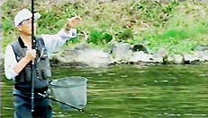 「木津川」 三重県伊賀地域を源流とし、京都府・奈良県にまたがる木津川。沢山の釣り人が広い清流の中に身を溶け込ませています。ここで「ころがし」という釣法をご紹介します。「ころがし釣り」は、8.1mの竿と9つほどの針がついた仕掛けを流れに這わし鮎を引っ掛ける釣法で、友釣りよりも歴史が古いといわれているものです。 釣りに関してのお問い合せは 木津川漁業協同組合 TEL:0774-86-5403 木津川漁業協同組合ホームページ