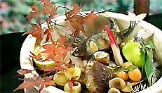 京都の北、貴船神社の鳥居前に建つ料理旅館「ふじや」。夏の名物・貴船川の床を始めた店としても知られています。紅葉の季節の料理は、松茸や平茸など山の幸の焼き物や土瓶蒸、そして自慢の「落ち鮎」。見た目も豪快な宝楽焼でいただきます。貴船川の清らかな水が育てた、美しい貴船の紅葉を眺めながら、ちょっと贅沢な秋を満喫できます