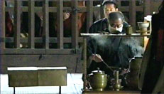 「大徳寺」 千利休ゆかりの寺、大本山大徳寺。毎年11月22日には、この寺を開いた大燈国師(宗峰妙超)を奉る法要「開山忌」が営まれます。法堂では、僧侶たちの読経の中、表千家家元・千宗左宗匠による献茶が行われます。格式高い寺で行なわれるおごそかな行事です。 【交通】 市バス 大徳寺前下車 5分