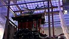 「八坂神社・蟷螂山」 七月十六日は宵山。この日の夕方、八坂神社舞殿前で「鷺舞」が披露されます。少女六人が白鷺に扮して舞う、美しさ・・・。夜の帳が降りて宵山本番。鉾に堤燈が駒形に飾られ、祗園囃子が夜空に流れます。蟷螂山は動くカマキリとして人気の山です。各山や鉾のそばからは、粽(ちまき)を売る子どもたちの声が響き、お祭気分は盛り上がります。 八坂神社ホームページ