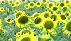 「与謝野町」 丹後ちりめんで栄えた丹後・与謝野町。往時の風情を残す旧街道沿いには、今も機織りの音が聴こえてきます。8月には、休耕田を利用して植えられた15万本のひまわりが一斉に開花するのに合わせて「ひまわりイベント」が行われ、夏の風物詩となっています。緑の田園に咲き誇るひまわり。はるかに望む大江山。夏の丹後の風景です。 与謝野町ホームページ