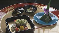 五重塔は、さつまいも。大文字焼きはかぼちゃ。野菜に細やかな細工をして京都を代表する景観に仕上げるのは、京料理の若き料理人廣田昌昭さん。おいしさに加え「見た目の美しさも大切」と私達の目を楽しませてくれます。さらに自身の得意とする津軽三味線をお店で披露。遊びごころもたっぷりです。杯をかたどったお膳でいただくうお庄の大名膳。京のもてなし料理をゆったりと居心地のいい座敷で味わえます。