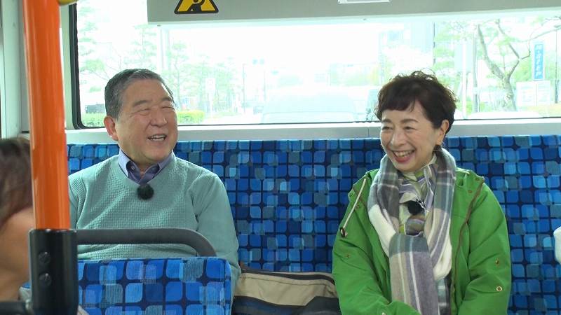 阿川さん&飯尾さんが路線バスに乗り込んで合流したのは、なんと『路線バスで寄り道の旅』の徳光和夫さんと田中律子さん!