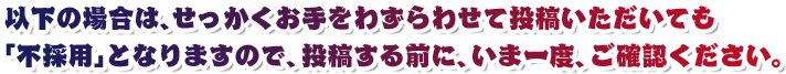 ただ、明確に「不採用」と判断できない投稿を多数いただいておりますので、
