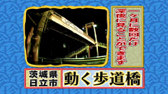 工場から14km離れた日立港にトラックで運搬する際、 モーターがあまりにも巨大なため、普通の歩道橋では 下を通れないので、日立製作所と国が協力して作った という歩道部分が最大10m上昇する歩道橋。 また、信号機をも越える高さの荷物を運ぶことから、 トレーラーが通る直前には道路を封鎖して信号機を曲げ ている。これらは一ヶ月に数回、深夜に見られる光景。 ![]() 【珍百景No.78】