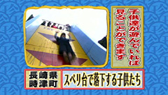 休日には、多くのこどもたちでにぎわう 「文化の森公園」に設置された、イギリス生まれの 「FREE FALL」は高さ4m、幅2m、長さ8mの スベリ台で、驚いたことにその角度は約90度。 子供たちはこれほどの急角度にも臆することなく とても楽しそうに次から次へと落下していく。 この遊具は、この公園を作るときに他の公園とは 違った特徴を出したいということで作られたのだそう。 ![]() 【珍百景No.75】