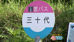 美良布駅前から出発するワンボックスの市営バスに乗って しばらくすると「三十代(さんじゅうだい)」というバス停が登場! これは、もちろん30歳代の人専用のバス停ということではなく、 この辺りの地名が「三十代」ということからきているのだそう。 しかし、この「三十代」という地名の由来は不明なのだとか。 ![]() |