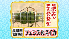 投稿者・来起くんが通う皆瀬小学校には、 フェンスの中で器用に育つスイカがあった!! 普通、スイカは土の上にツルを伸ばして育つのだが、 このスイカはツルがフェンスに巻き付き、わずかな隙間の中で 花を咲かせ、そのまま生長を続けたため、このような形になった。 ちなみに、このスイカは取材の際、児童たちで 美味しくいただいたため、現在は見ることができません。 ![]() |