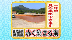 マリンブルーの海が島の付近だけ真っ赤に染まった光景。 これはプランクトンの異常発生によって起こる赤潮ではなく、 硫黄島各地で湧く温泉によって起きる現象。 温泉に含まれる鉄分が海水と混ざり、海を赤く染めているそう。 このような海は世界でも例がなく、とても貴重。 ![]() |
