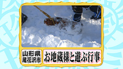木彫りのお地蔵様をロープで縛り、叩きつけたかと思えば 集落の中を引きずりまわし、冷たい水にジャブジャブ浸けたりと、 子供たちがお地蔵様を乱暴に扱う光景…。 これは「地蔵転がし」という、北郷地区に200年以上続く 伝統行事で、子供たちはお地蔵様と遊んでいるのだそう。 この行事は、選ばれた15人の小学生が2手に別れて行い、 信仰心を深めるために、遠慮せずにお地蔵様を手荒く扱う。 お地蔵様に雪がたくさん付けば無病息災のご利益があるということで、 各家庭で雪を落としながら町内を1周し、最後は寒い思いをした お地蔵様に温かいお湯をかけてあげるそうです。 |