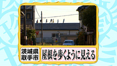 地元の集会場の屋根の上を人や自転車が通行している!? 実は、建物の裏に土手があり、遠くから見ると屋根と土手の高さが 重なるため、屋根の上を人が歩いているように見えるのだそう。 |