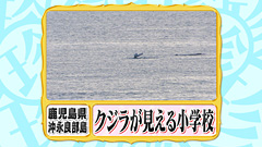 知名小学校では、数百mの沖合いで勇壮に泳ぐクジラの姿を、 校舎から見ることができる!! このクジラは体長15mを超えるザトウクジラで、 夏はエサが豊富な北極近海で過ごし、繁殖期になると 子育てのために温暖な南の海へやって来るのだそう。 そのため、これは毎年1〜3月頃限定で見られる光景。 |