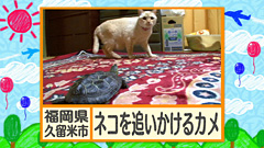 投稿者・楓ちゃんのお宅で飼っている クサガメのおかめちゃん(3歳)が 逃げるネコをひたすら追いかけまわしている…。 追いかけられているネコはゆきちゃん(メス・6歳)。 専門家によると、カメは視力は良くないが、 嗅覚は優れているため、おかめちゃんはゆきちゃんの においが気に入って追いかけているのでは…とのこと。 ![]() |