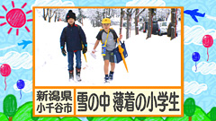 豪雪地帯で有名なこの地にある小千谷小学校に、 降り積もる雪の中を半ソデ短パンという 薄着すぎる格好で登下校する小学生がいた!! 1年中半ソデ短パンで過ごしているという この子は小池栄輝くん(小学3年生)。 去年の冬までは防寒具を着用していたそうだが、 走って帰る時に汗をかくのが嫌だという理由から 家から学校までの約30分の道のりを このような格好で歩くようになったのだそう。 |