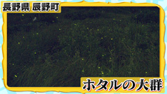 無数のホタルが幻想的に光り輝いている。 これは、毎年6月下旬頃 ほたる童謡公園で行われている 「辰野ほたる祭り」で見ることができる光景。 ホタルの保護を目的に整備されたほたる童謡公園には、 祭りの時期になると約8万匹のゲンジボタルが集まるという。 |
