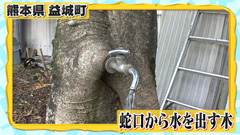 もちの木から飛び出た蛇口から水が流れている…。 木が細かった頃、水道管を固定するために木に沿わせていたところ、 木の生長とともに水道管を巻き込み、このような光景が生まれたそう。 ![]() |