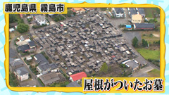 上空から見ると、まわりの家々と比べて 明らかに小さな屋根が立ち並ぶ集落が存在した! この家のような建物の正体はお墓。 この地域は、桜島の火山灰がよく降り注ぐため お墓にも屋根を取り付けているそう。 |