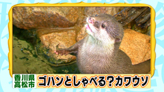 「新屋島水族館」で暮らすカワウソのメイちゃんは 大好物の魚の切り身を見ると… 「ゴハン」と声に出しておねだりする! 普段はおとなしく、全く鳴かないメイちゃんだが、 エサの時間になると大きな声で「ゴハン」とおねだりするそう。 |