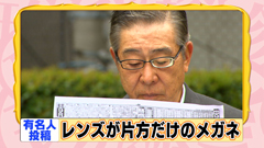 投稿者・大橋巨泉さんのメガネは左側だけにレンズが入っている。 生まれた時から極度の近眼だったという大橋さんだが、 1年前に右目が白内障になり、手術をしたところ 右目の視力が1.0に回復したという! そのため、現在視力が悪い左側だけに レンズが入ったメガネを特注で作ったという。 |