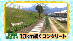 住宅街の道路沿いに、四角いコンクリートブロックが 町全体、約10kmにわたって延々と並んでいる! この町にある別子山は江戸時代から1973年まで 銅山として採掘が盛んだった山で、銅を運ぶための線路と 鉱物が含まれる水を流す鉱水路が作られた。 線路跡は埋め立てられたが、現在も銅山から水が流れているため その水を排水するための鉱水路が町を縦断しているのだそう。 |