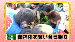 草や葉っぱで作られたお神輿を担ぎ、 青々とした葉っぱを揺らすことで春の訪れに感謝する 「じじぐれ祭り」のクライマックスで、男たちが お神輿についている御神体を奪い合って激しく争う光景が! 花で彩られた御神体は全部で5本。みごと御神体を手にして 神殿に供えることが出来れば幸せになれるのだという。 このお祭りは県の無形民俗文化財にも指定された 約800年の歴史あるお祭り。 |