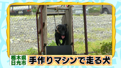 「渓谷」というおみやげ屋さんの店先で 手作りのランニングマシンで走り続ける犬がいた! 走っているのはテロルくん(アメリカンピットブルテリア・2歳)。 運動好きというテロルくん、1時間の散歩では満足できずに 散歩から帰ってすぐにマシンで走り出し、1時間から2時間、 長い時では3〜4時間も走り続けるという。 ちなみにこのマシン、長年犬を飼っているという 飼い主の星さんが20年ほど前に制作したものだそう。 |