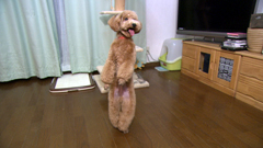 【東日本 動物珍百景対決】大賞 投稿者・大類さんの愛犬ふうたくん(トイプードル・1歳)は 音がなるおもちゃの音が聞こえると二本足で立ち 楽しそうにステップを踏んでダンスする!!! このおもちゃが大好きだというふうたくんは おもちゃを鳴らして遊んでいるうちに いつの間にかステップを踏んでおもちゃをねだるようになったという。 |