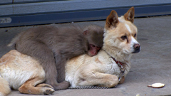 【心温まる珍百景対決】大賞 中原さんご家族の自慢の愛犬リュウくん(オス・14歳)の元に 毎朝、野生のサルが遊びに来る。 「犬猿の仲」と言われる犬とサルだが 2匹は毛づくろいしたり、じゃれ合ったりと、とても仲良く遊んでいる。 人を警戒していて人の気配があると近づいて来ないというこのサルは ドッグフードなどの食べ物には目もくれず、ただリュウくんに甘えている。 2カ月ほど前からリュウくんの元を訪れるようになったというこのサルは おそらく、この付近の山で家族と共に暮らしていたが、家族とはぐれて さまよっていた時に、生まれて初めて犬のリュウくんと遭遇し、 興味を引かれて近づき、リュウくんもサルを受け入れたことから 大の仲良しになったと考えられる。 ![]() |