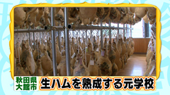 誰もいない小学校の校舎内にたくさんの 肉の塊がぶら下がっている! ぶら下がっているのは熟成中の豚の生ハム。 なんと、学校全体で約4500本もの生ハムがぶら下がっているそう。 2年前、少子化のため廃校になった 旧山田小学校の校舎裏には世界遺産の白神山地があり 校舎の大きな窓から生ハムの熟成に好条件となる風が 吹き込んでくることから「白神フーズ」に廃校を貸すようになったそう。 |