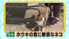 普段は2階の寝室からほとんど動かないというミミちゃん(15歳)だが、 玄関をホウキで掃き掃除すると、玄関に降りてくる。 ホウキで背中をさすってもらうのが大好きだというミミちゃん。 しかし、2階にいてもホウキの音は聞こえてこないが… 実は、ネコの聴覚は、人の2倍あるという犬のさらに2倍あると言われ、 20m先を走るネズミの足音もわかるのだとか。 |